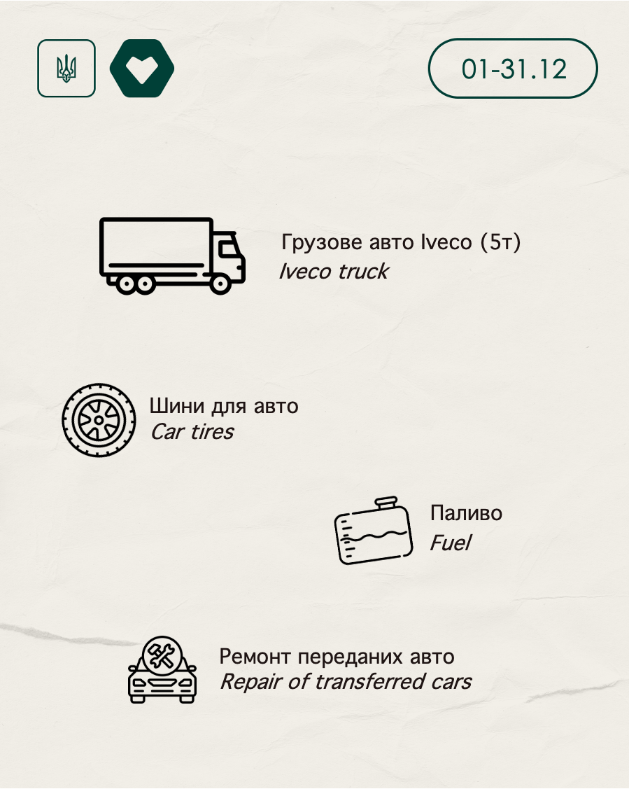 - купівля та передача вантажного автомобіля Iveco вантажопідйомністю 5 тонн