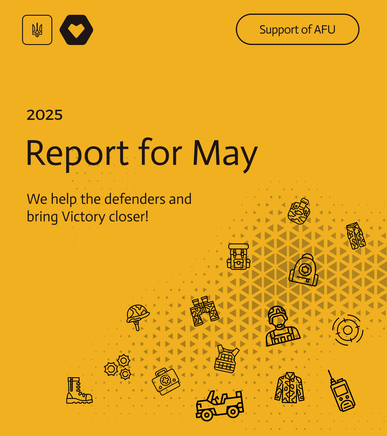 To keep our lives intact, we must keep helping those who hold the sky and land for us. In May, we sent provision and equipment to the front: